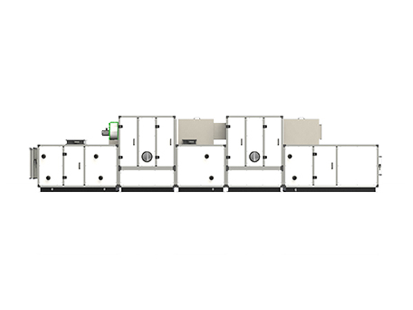 低露點(diǎn)轉(zhuǎn)輪除濕的原理是將經(jīng)過二級(jí)轉(zhuǎn)輪處理的再生空氣的熱量傳遞至前級(jí)再生區(qū),從而降低未加熱的再生空氣的含濕量。當(dāng)轉(zhuǎn)輪轉(zhuǎn)到預(yù)處理區(qū)時(shí),冷卻預(yù)處理區(qū),低溫除濕效率提高。熱量又被加熱前的再生空氣吸收,同時(shí)提高了再生空氣的溫度。這樣就有效降低了再生加熱器的能耗,而且除濕后的空氣溫度較低,低露點(diǎn)處理可以使空氣中的含水量降低至0.5~1g,使空氣中的水蒸氣更難結(jié)露,達(dá)到降低再生能耗和降低空氣露點(diǎn)值的目的。